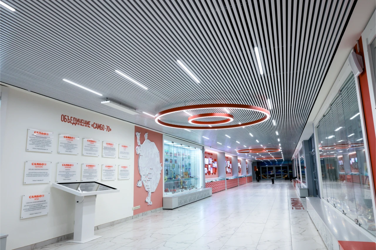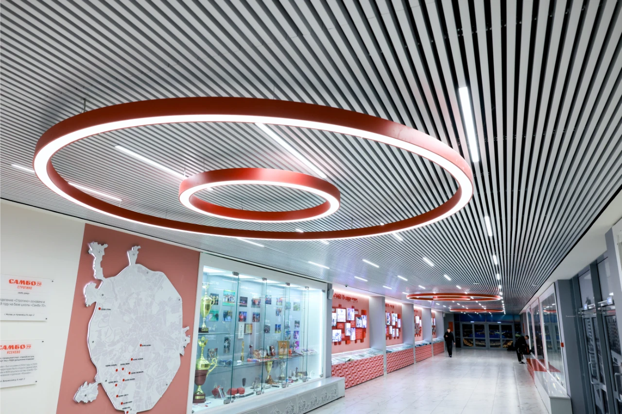 Selecta преобразила школу «Самбо-70» - одно из ведущих столичных образовательных учреждений спортивной направленности. Благодаря тому, что дизайн был выбран с учетом стиля учреждения, светильники гармонично вписались в интерьер. Теперь находиться в школе стало еще приятнее.