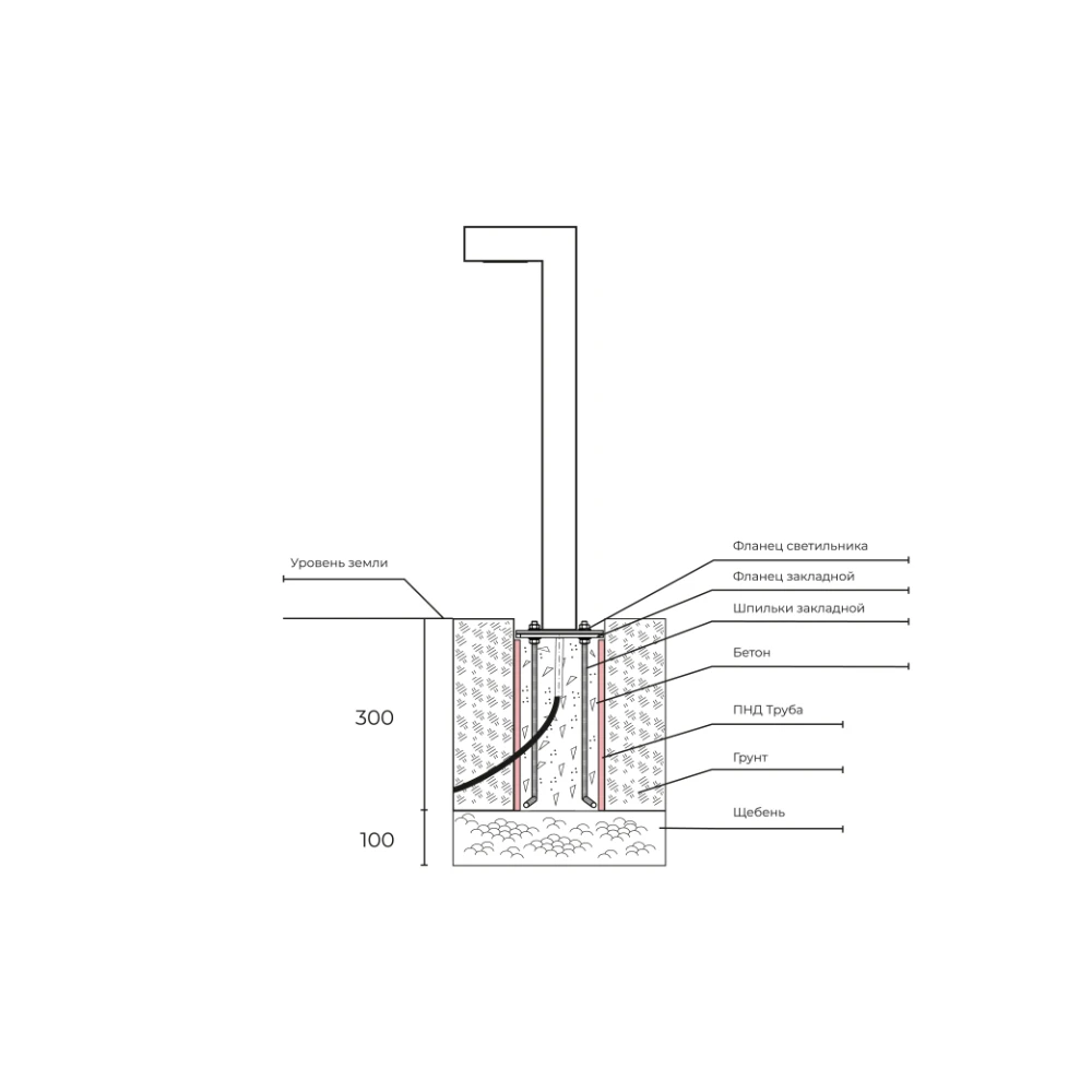 Благодаря минималистичному дизайну светильники BEND становятся идеальным решением для ландшафтного освещения. Корпус выполнен из алюминия и покрашен порошковой краской по таблице цветов RAL. Возможно изготовление нестандартных размеров. Шпильки закладной устанавливаются в грунт, в подготовленную яму цилиндрической формы и соответствующей глубины, с соблюдением необходимой ориентации монтажных отверстий. Для фиксации закладной она заливается бетонным раствором. При подземной проводке кабеля питания кабель в гофро-трубе или в гладкой трубе ПНД предвадительно заводится в лючок закладной детали и через фланец выводится на длину до соединительной коробки.
