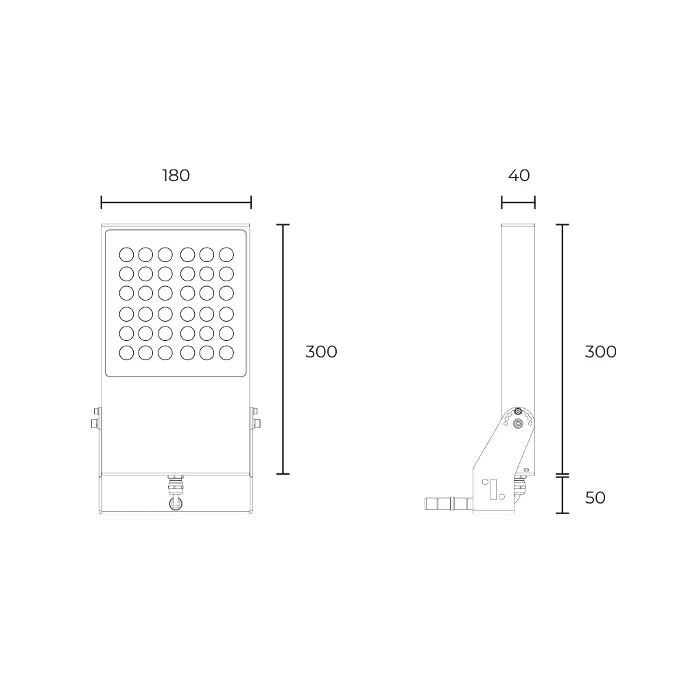 Светодиодный прожектор ZARO S36 с креплением на кронштейн к фасаду и на опоре и градацией рассеивания света. Предназначен для освещения пространства с большой высоты и расстояния. Корпус выполнен из алюминия и покрашен порошковой краской по таблице цветов RAL. Закладная устанавливается в грунт, в подготовленную яму цилиндрической формы и соответствующей глубины с соблюдением необходимой ориентации монтажных отверстий. Для фиксации закладной она заливается бетонным раствором. При подземной проводке кабеля питания кабель в гофро—трубе или в гладкой трубе ПНД предвадительно заводится в лючок закладной детали и через фланец выводится на длину до соединительной коробки.