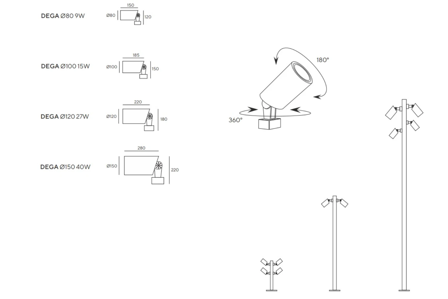 Светодиодный прожектор DEGA с креплением на опоре. Корпус выполнен из алюминия и покрашен порошковой краской по таблице цветов RAL.