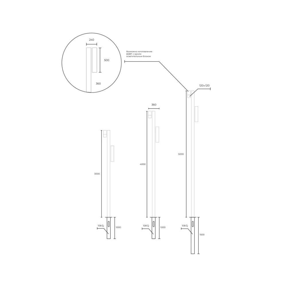 KORT — оптимальное решение для приятного освещения и дополнения дизайна городских объектов: парков, скверов, дворовых территорий, небольших парковок. Закладная устанавливается в грунт, в подготовленную яму цилиндрической формы и соответствующей глубины, с соблюдением необходимой ориентации монтажных отверстий. Для фиксации закладной она заливается бетонным раствором. При подземной проводке кабеля питания, кабель в гофротрубе или в гладкой трубе ПНД предварительно заводится в лючок закладной детали и через фланец выводится на длину до соединительной коробки.