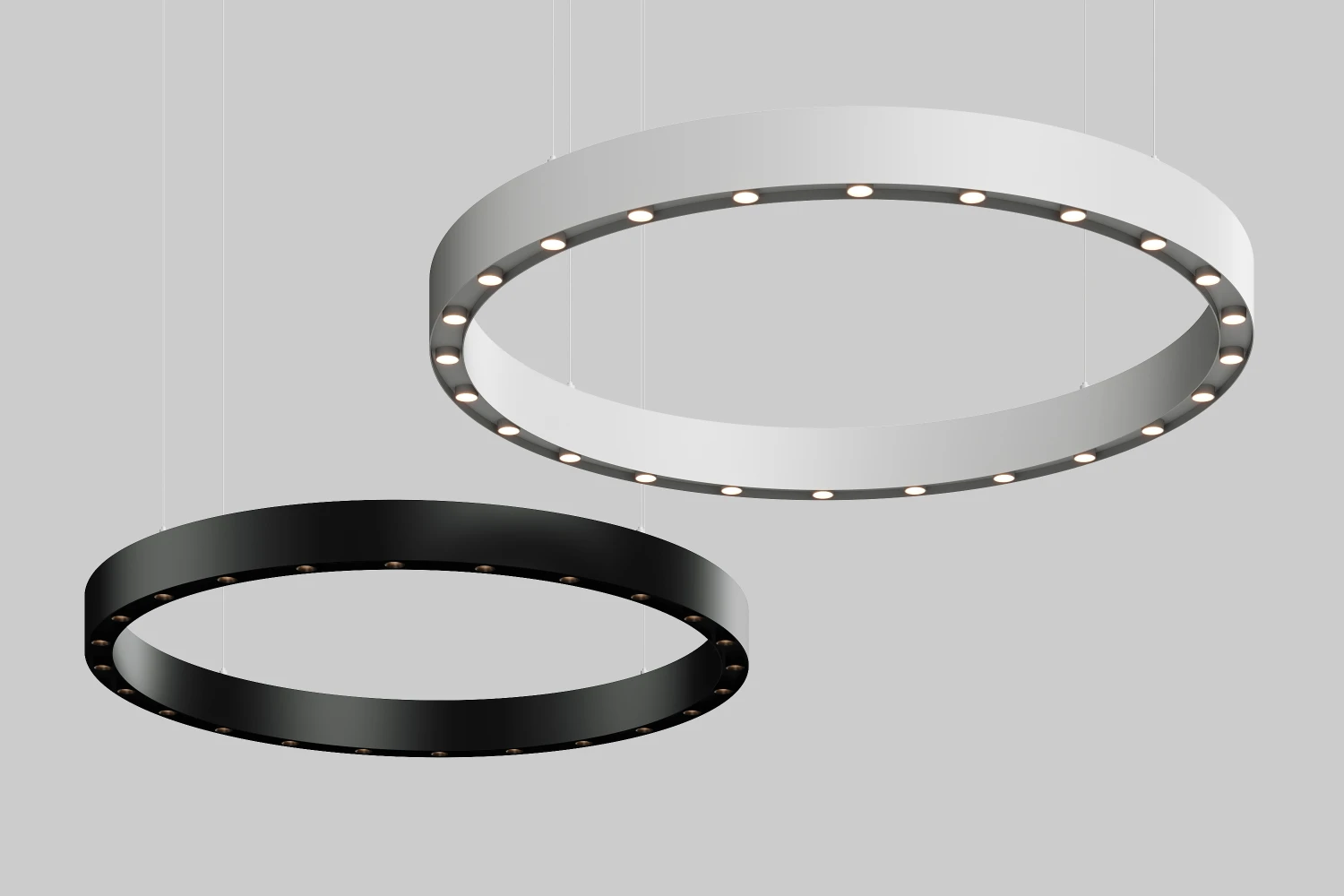 Подвесной корпусной светильник кольцевой формы с интегрированными в корпус светильниками PALLO MINI предназначен для освещения торговых помещений и декорирования зон. Он обеспечивает как общее, так и локальное освещение, создавая равномерное распределение света и акцентируя отдельные участки пространства. Идеален для коммерческих интерьеров, где требуется эффективное и стильное освещение с возможностью точечной настройки света.