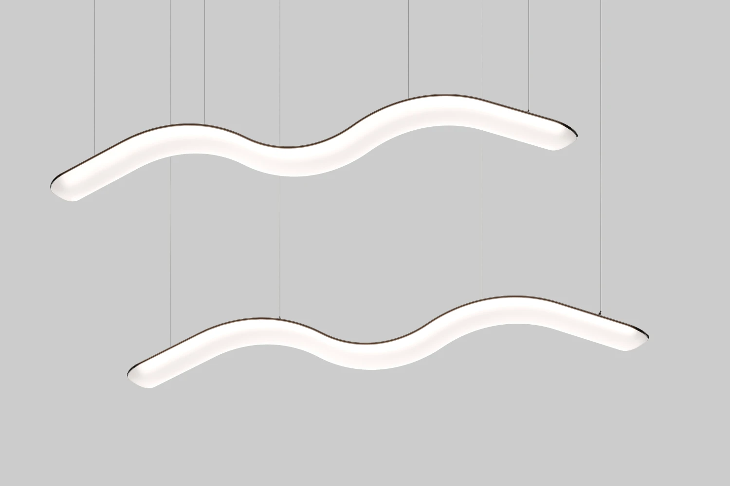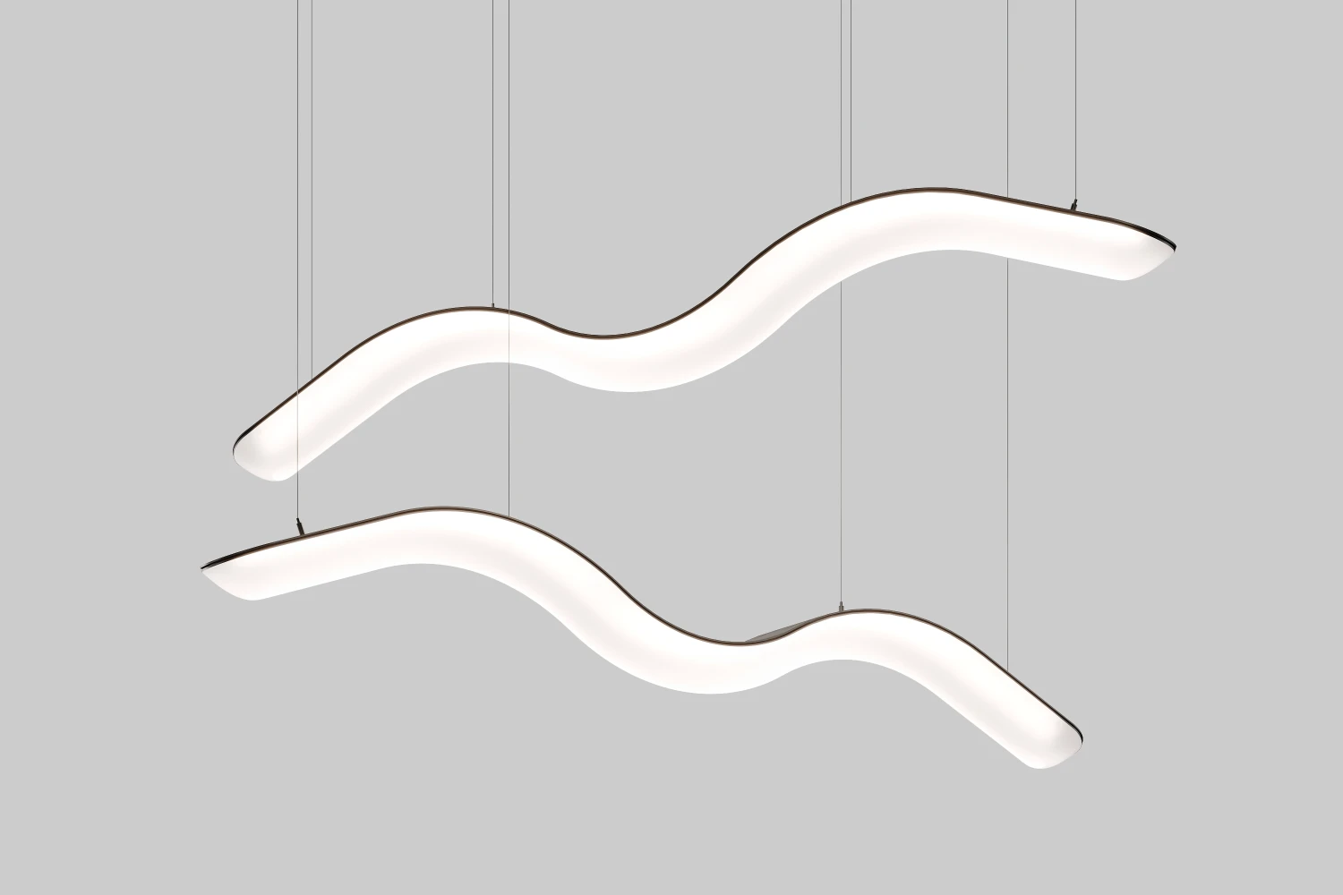 Подвесной крупногабаритный светильник линейной формы из поликарбоната предназначен для освещения торговых и офисных пространств, а также для декора интерьера. Он обеспечивает равномерное распределение света и подходит для общего освещения, а современный дизайн и прочный материал позволяют гармонично вписаться в различные стили интерьеров.