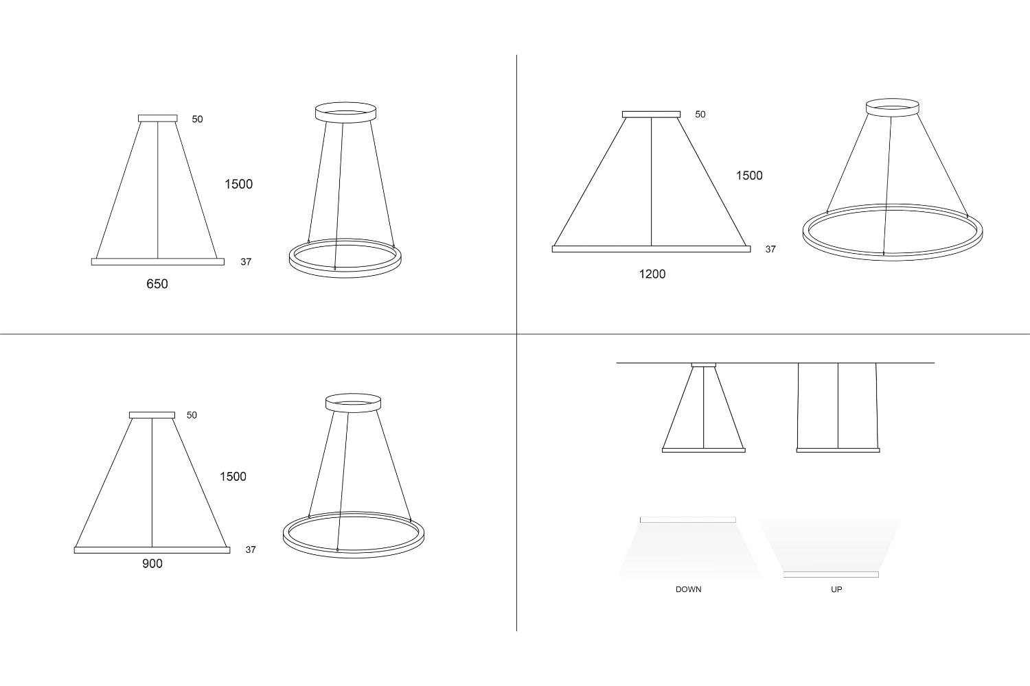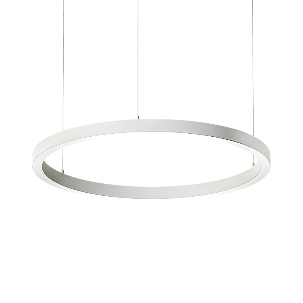 Кольцевой светильник с возможностью накладного и подвесного монтажа подходит для освещения торговых и офисных помещений. Его минималистичный дизайн позволяет легко интегрировать его в различные интерьеры, также светильник может быть крупногабаритным. Светильник обеспечивает равномерное освещение, что делает его подходящим для рабочих зон и общего освещения.