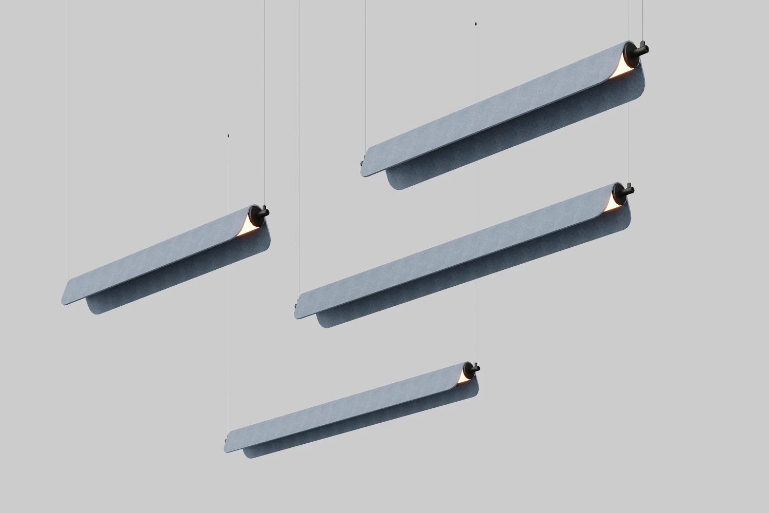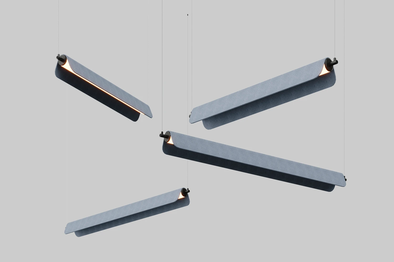 Серия акустических светильников LINE 37 ACOUSTIC представляет собой современное решение, объединяющее минималистичный дизайн, освещение и акустические характеристики. Эти светильники обеспечивают эффективное шумопоглощение, что способствует созданию комфортной и уютной атмосферы в помещениях. Линейная форма LINE 37 ACOUSTIC позволяет легко интегрировать их в различные интерьеры. В стандартной комплектации доступны несколько размеров, что делает их универсальными для использования в разных пространствах. Одной из ключевых особенностей данной серии является широкий выбор расцветок войлока, из которого изготовлен внешний корпус. Это позволяет адаптировать светильник под любой стиль интерьера. Кроме того, LINE 37 ACOUSTIC может быть изготовлен на заказ в различных размерах и цветах, что дает возможность удовлетворить индивидуальные потребности клиентов и обеспечить гармоничное сочетание с общим дизайном помещения.