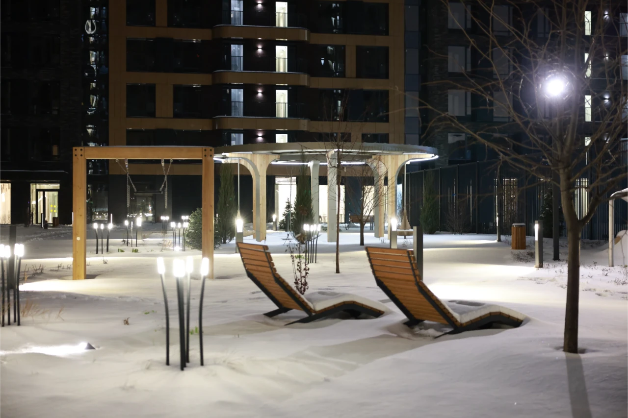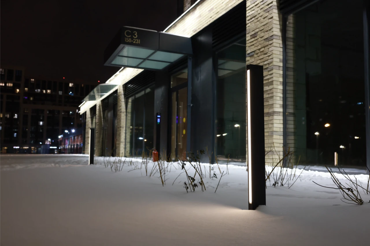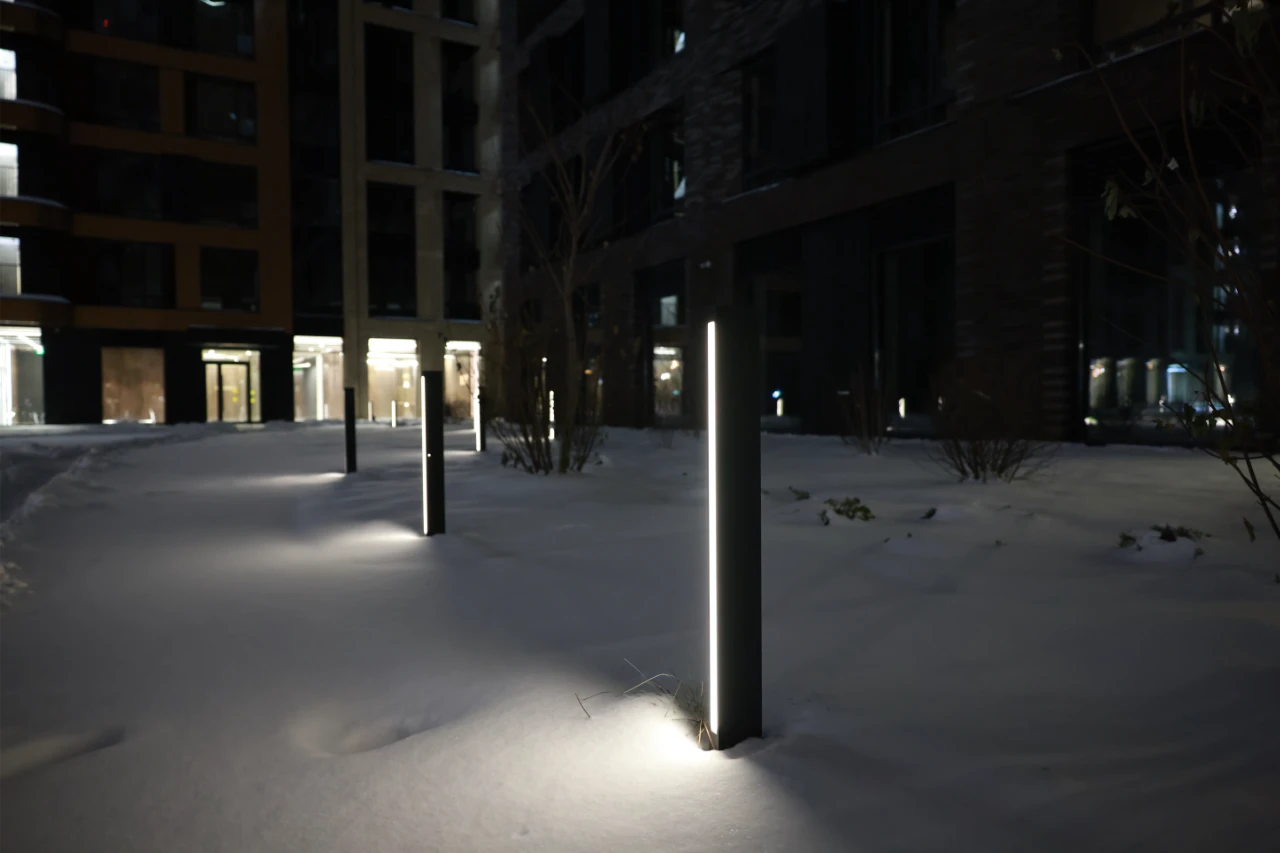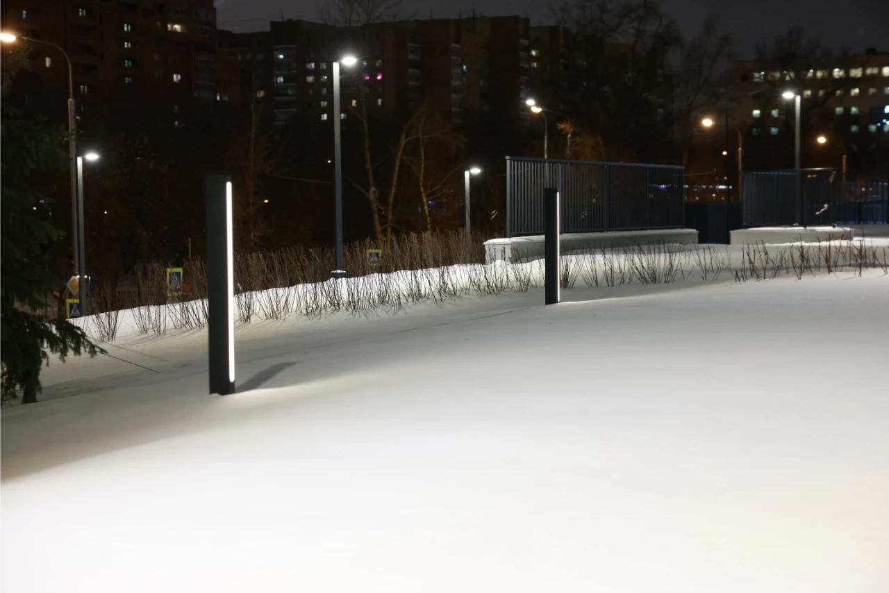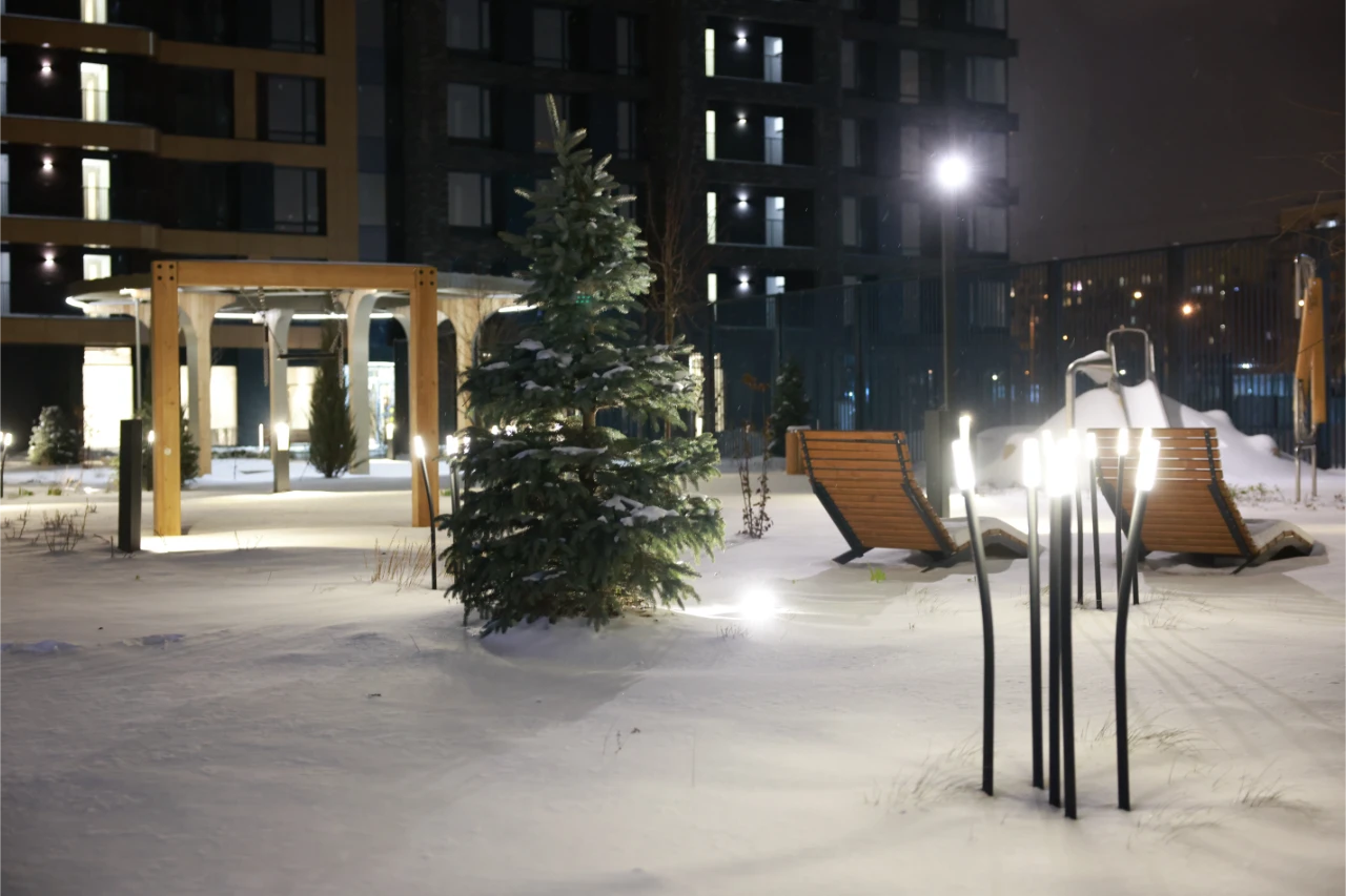 Компания Selecta произвела и поставила ландшафтное, садово-парковое и архитектурное освещение, а также созданы дизайнерские "цветы", напоминающие колоски.