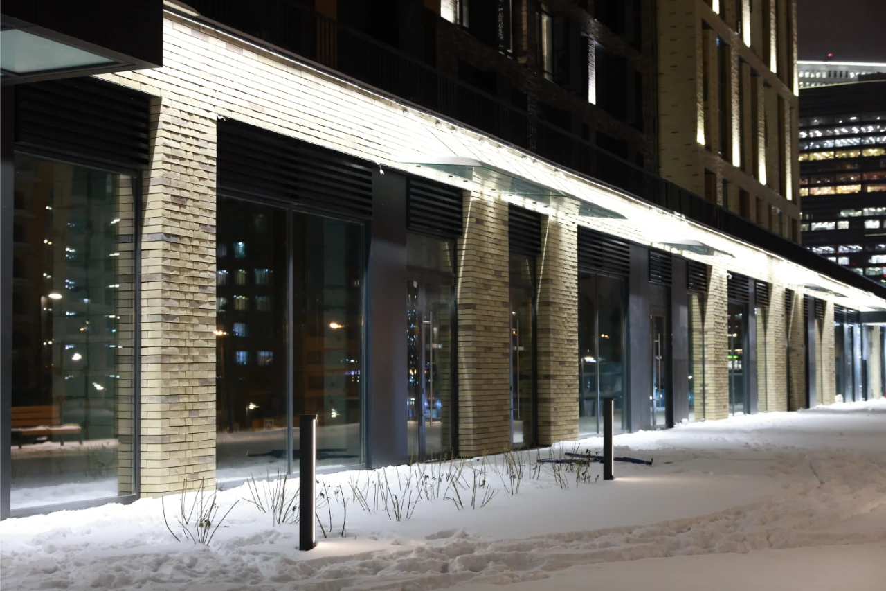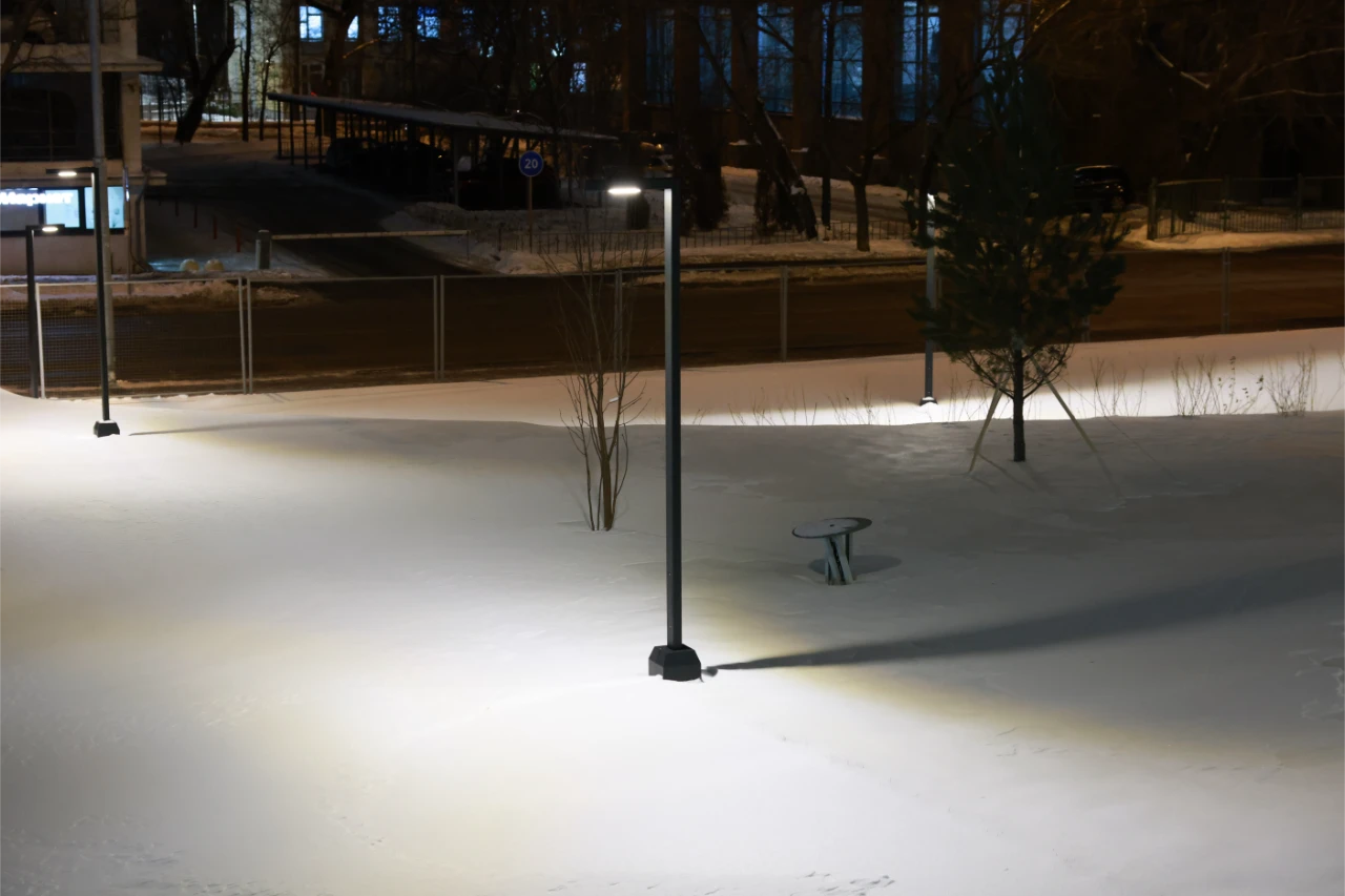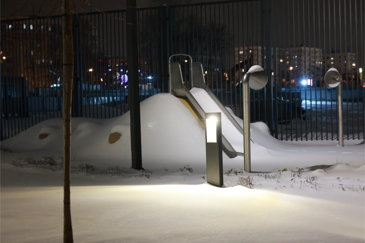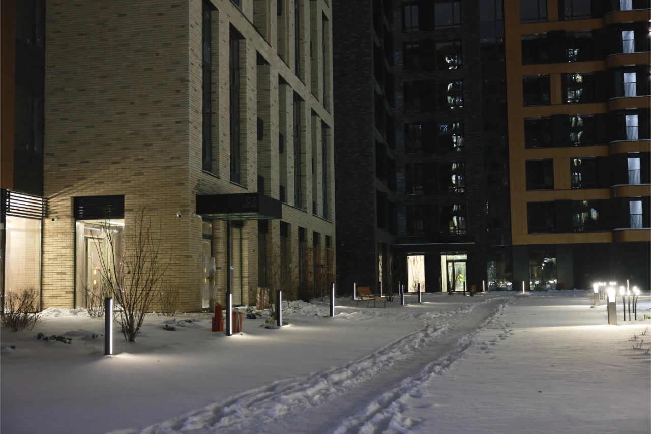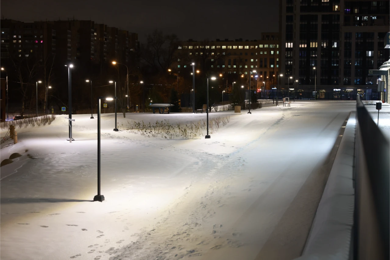 Компания Selecta произвела и поставила ландшафтное, садово-парковое и архитектурное освещение, а также созданы дизайнерские "цветы", напоминающие колоски.