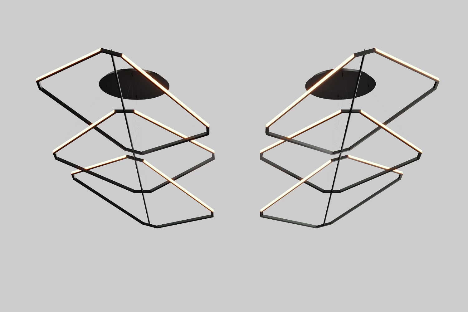 Нестандартный подвесной линейный светильник с геометричными элементами предназначен для освещения торговых залов, офисных и лофт-помещений, а также декоративных зон. Его оригинальная форма и четкие линии добавляют современный акцент в интерьер, обеспечивая при этом равномерное и эффективное освещение. Подходит для создания функциональных и стильных пространств.