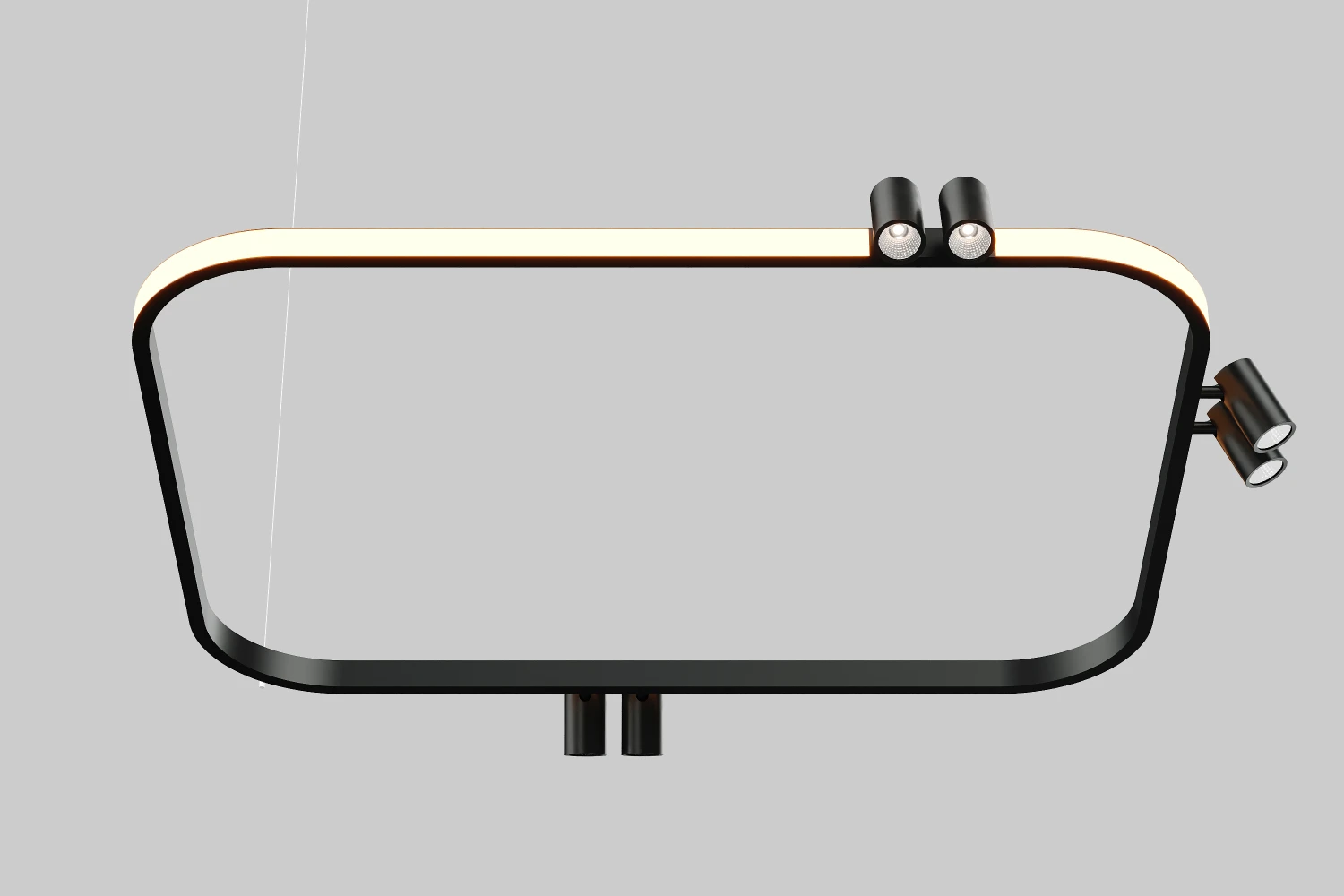 Подвесной кастомный светильник линейной формы с минималистичным дизайном предлагает гибкость в освещении благодаря возможности интеграции трековых светильников. Это решение идеально подходит для торговых и офисных помещений, а также для декорирования интерьеров. Его лаконичная форма обеспечивает современный вид и равномерное распределение света, позволяя адаптировать освещение под конкретные задачи и создавая комфортную атмосферу в пространстве.