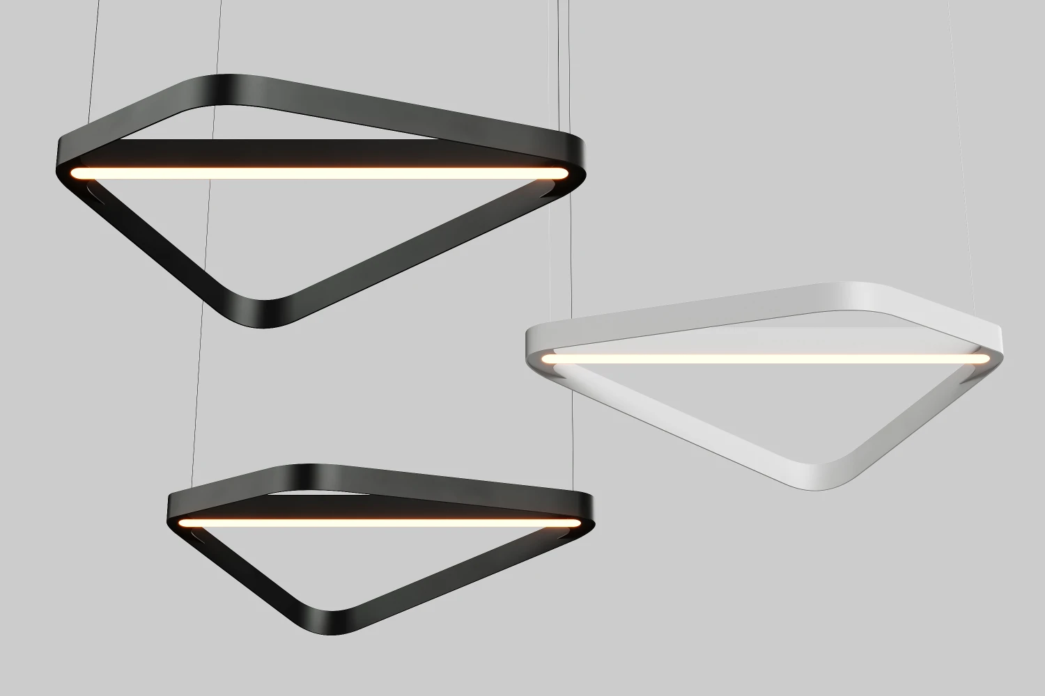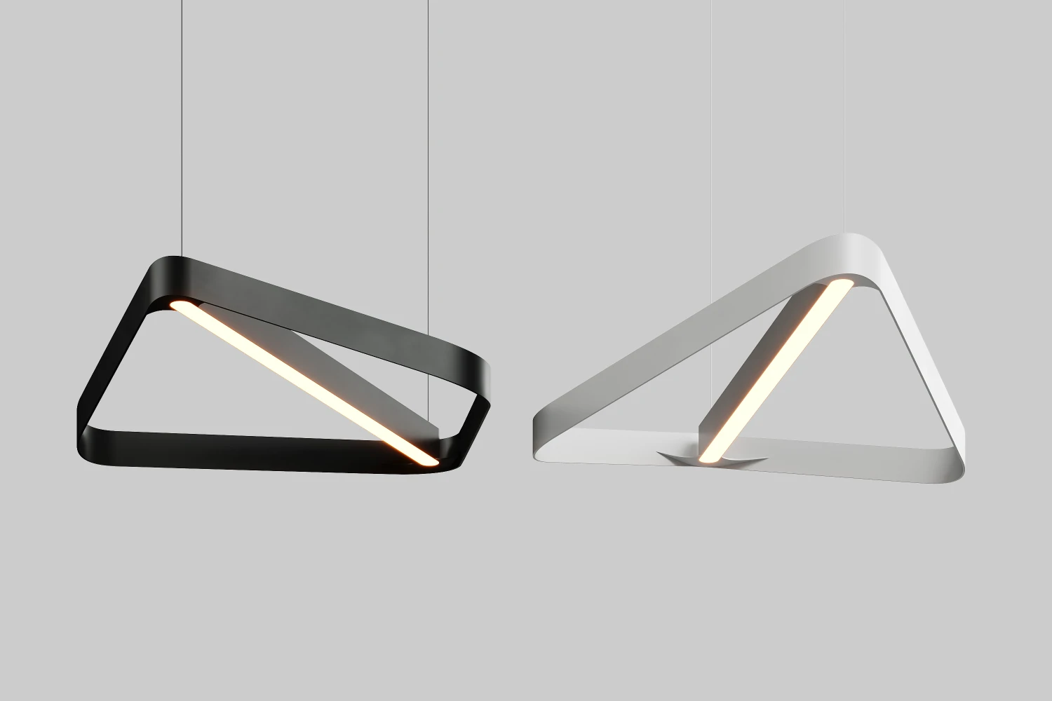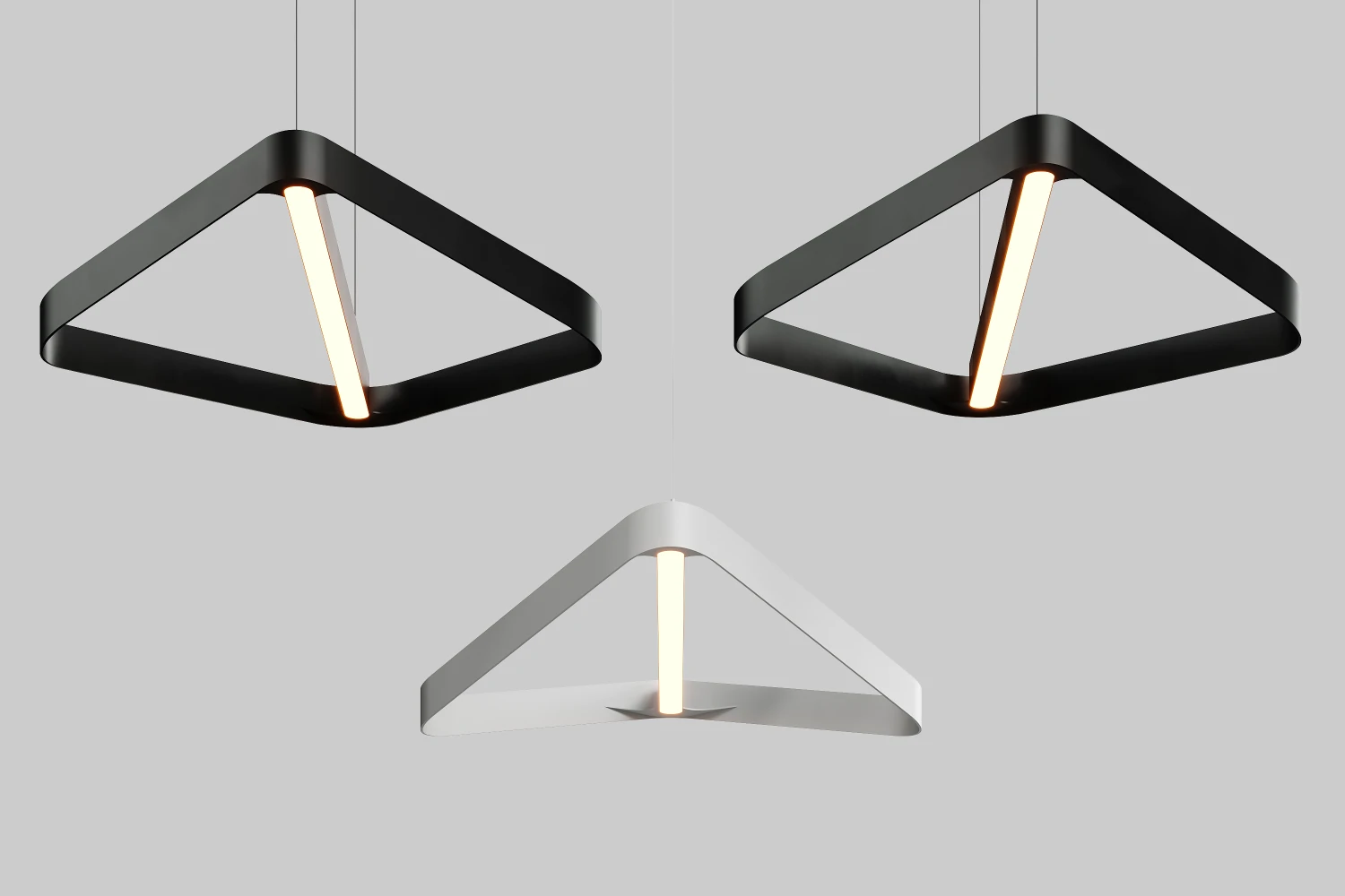 Нестандартный подвесной линейный светильник геометричной формы предназначен для освещения торговых залов, декоративных зон, офисных и лофт-помещений. Его оригинальный дизайн с геометрическими элементами добавляет современный акцент в интерьер, обеспечивая при этом равномерное освещение, подходящее для различных типов помещений.
