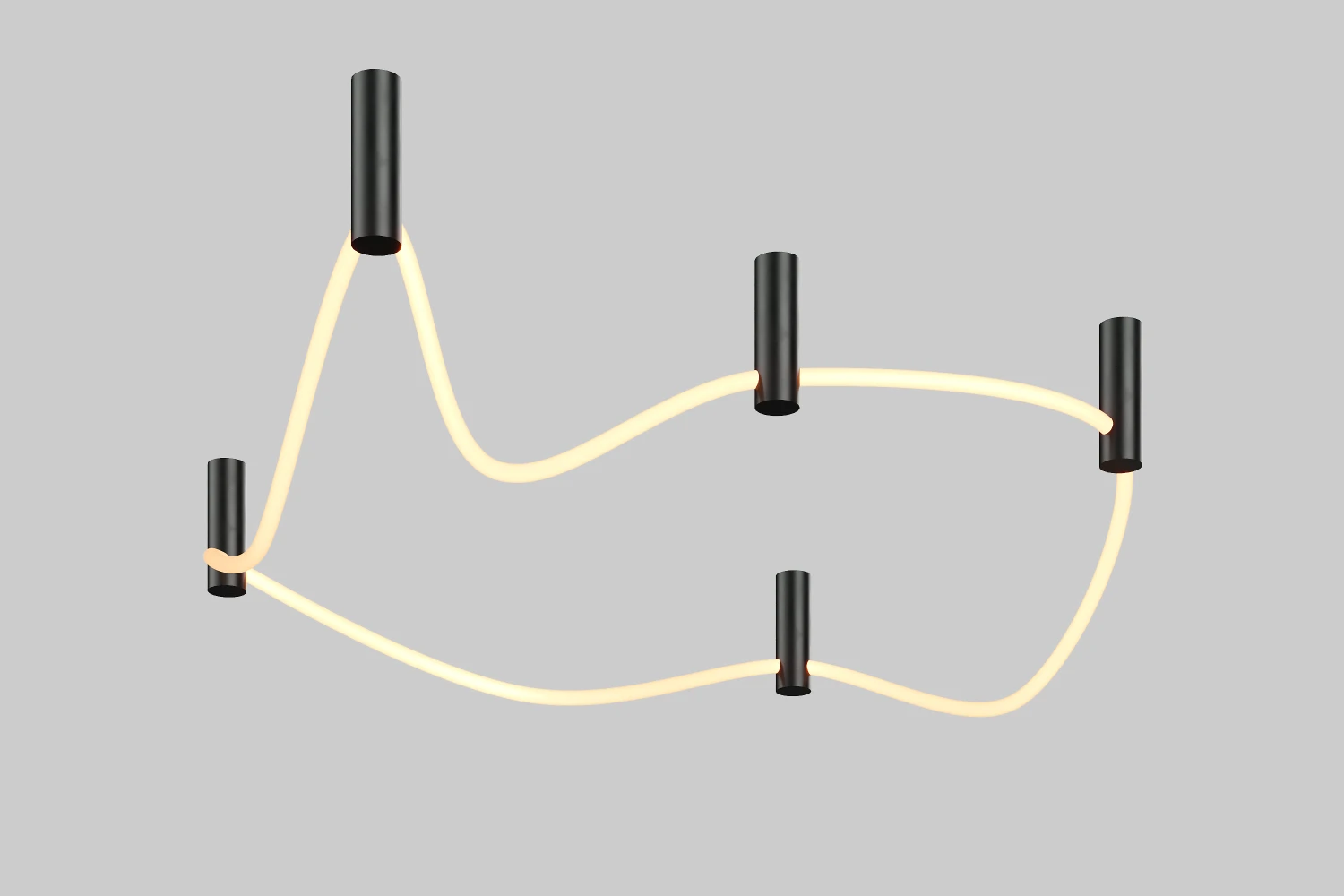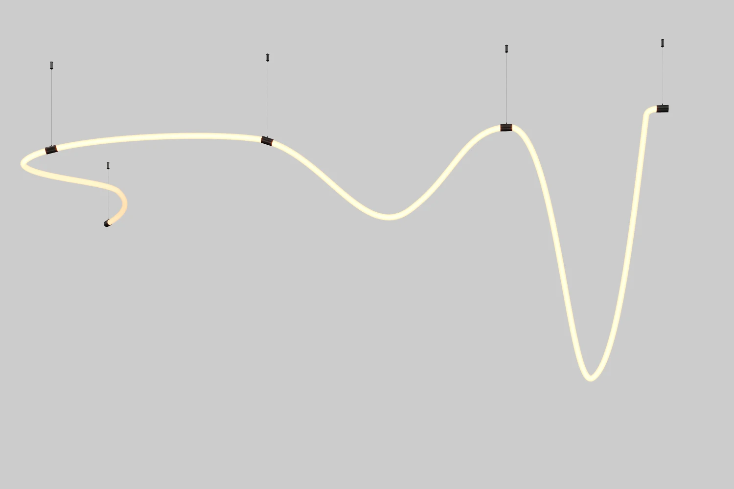 Подвесной линейный светильник из гибкого неона и металлического профиля — это нестандартное и функциональное решение для освещения торговых, офисных и лофт пространств. Его дизайн и возможности гибки позволяют создавать уникальные световые линии, подчеркивающие стиль интерьера. Светильник обеспечивает равномерное освещение и может служить как самостоятельным элементом декора, так и дополнением к другим осветительным решениям.