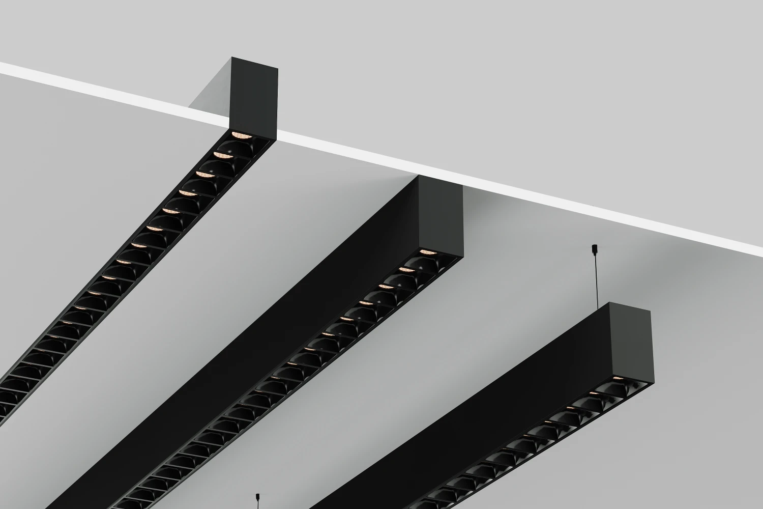 Светильник линейной формы с минималистичным дизайном предлагает универсальные варианты монтажа: подвесной, накладной, а также встраиваемый в гипсокартон и натяжной потолок. Он идеально подходит для освещения торговых и офисных помещений, обеспечивая равномерное и эффективное освещение. Его простой и лаконичный внешний вид позволяет легко интегрироваться в различные интерьеры, создавая современную и функциональную атмосферу.