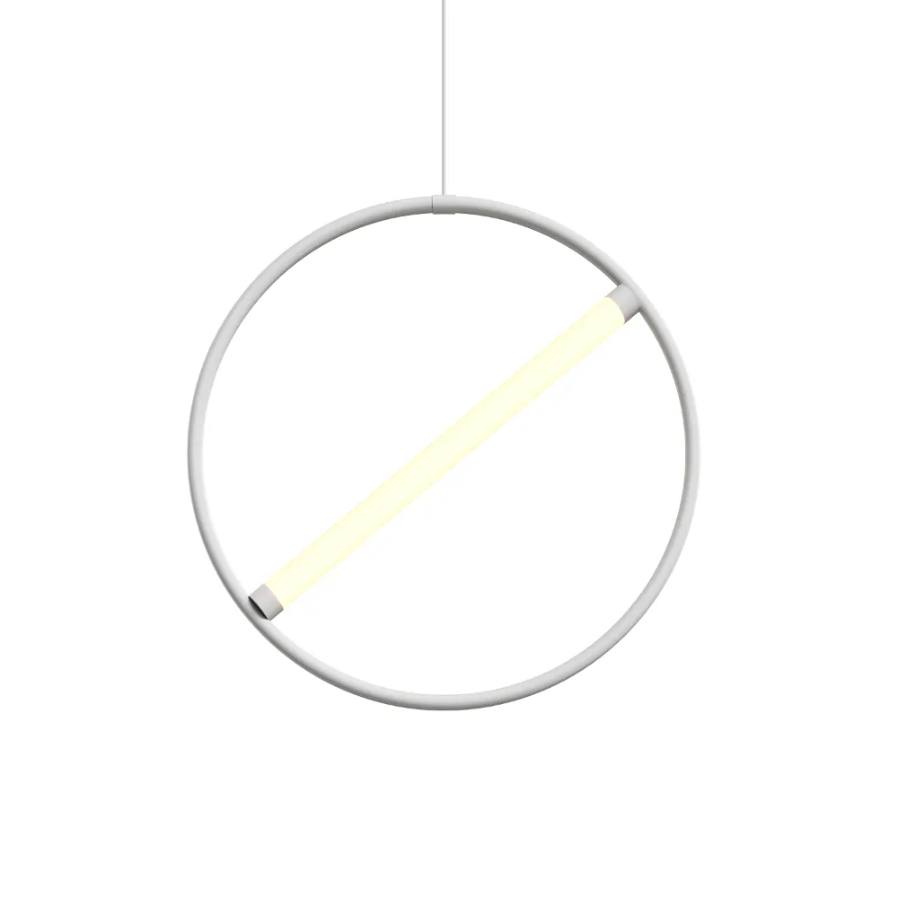 Подвесной светильник с кольцевой основой и цилиндрическим источником света, обеспечивающим 360-градусное освещение, идеально подходит для декоративного оснащения помещений различных типов. Подходит для использования в интерьерах с различными функциональными задачами, обеспечивая эффективное и стильное решение для общего освещения.